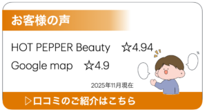 施術後も、状態を維持しやすいようにアフターケアまでしっかりサポートいたします。気になることや不安な点がありましたら、いつでもお気軽にご相談ください。