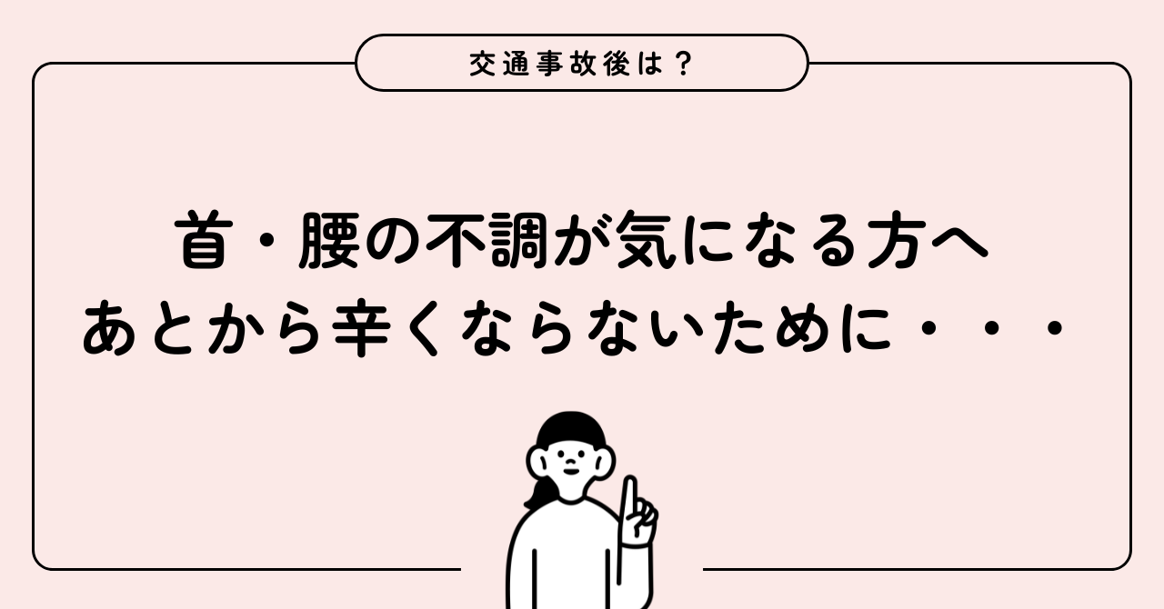 交通事故後の首や腰の違和感は、時間が経ってから強くなることもあります。