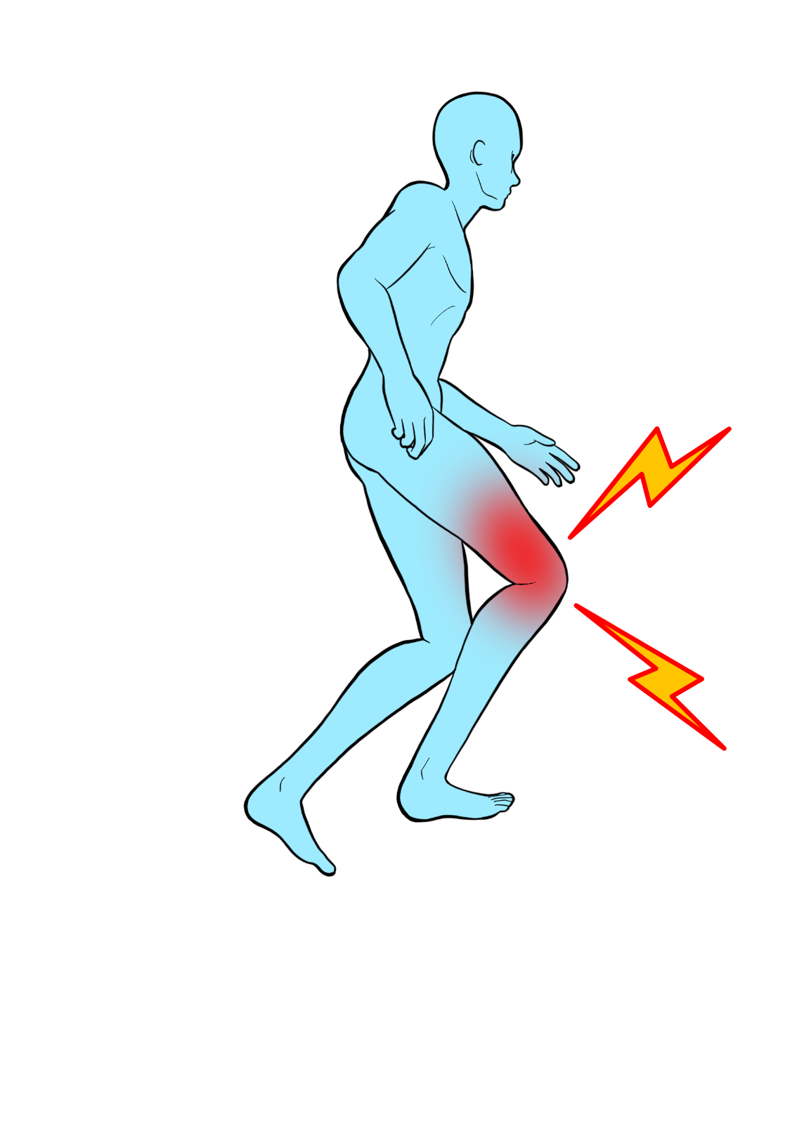 ジャンパー膝では、大腿四頭筋や膝周囲の筋肉が硬くなり、膝蓋腱に強い負担がかかっています。